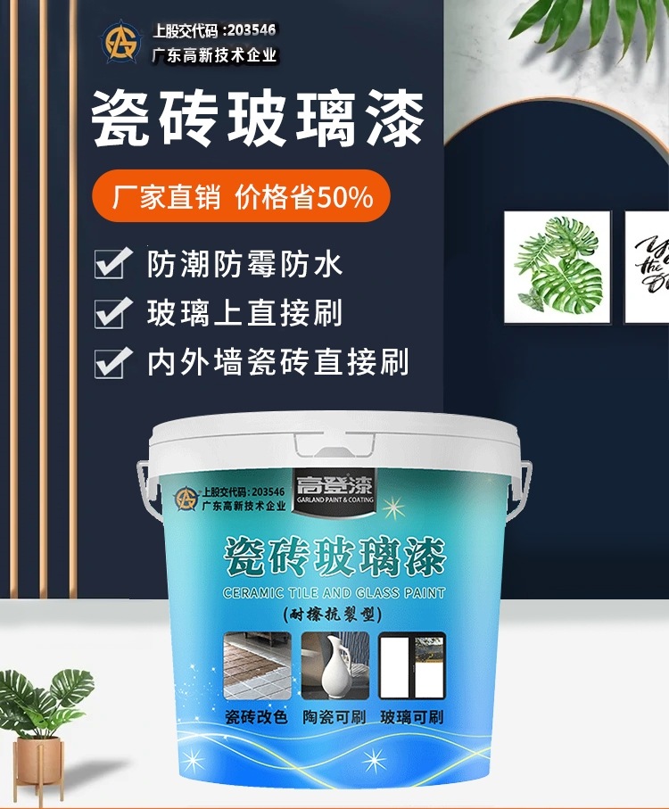 高登瓷磚玻璃漆,防水防霉防潮,施工簡單,多種顏色可以選擇,內外墻瓷磚上直接刷漆,玻璃上直接刷漆。